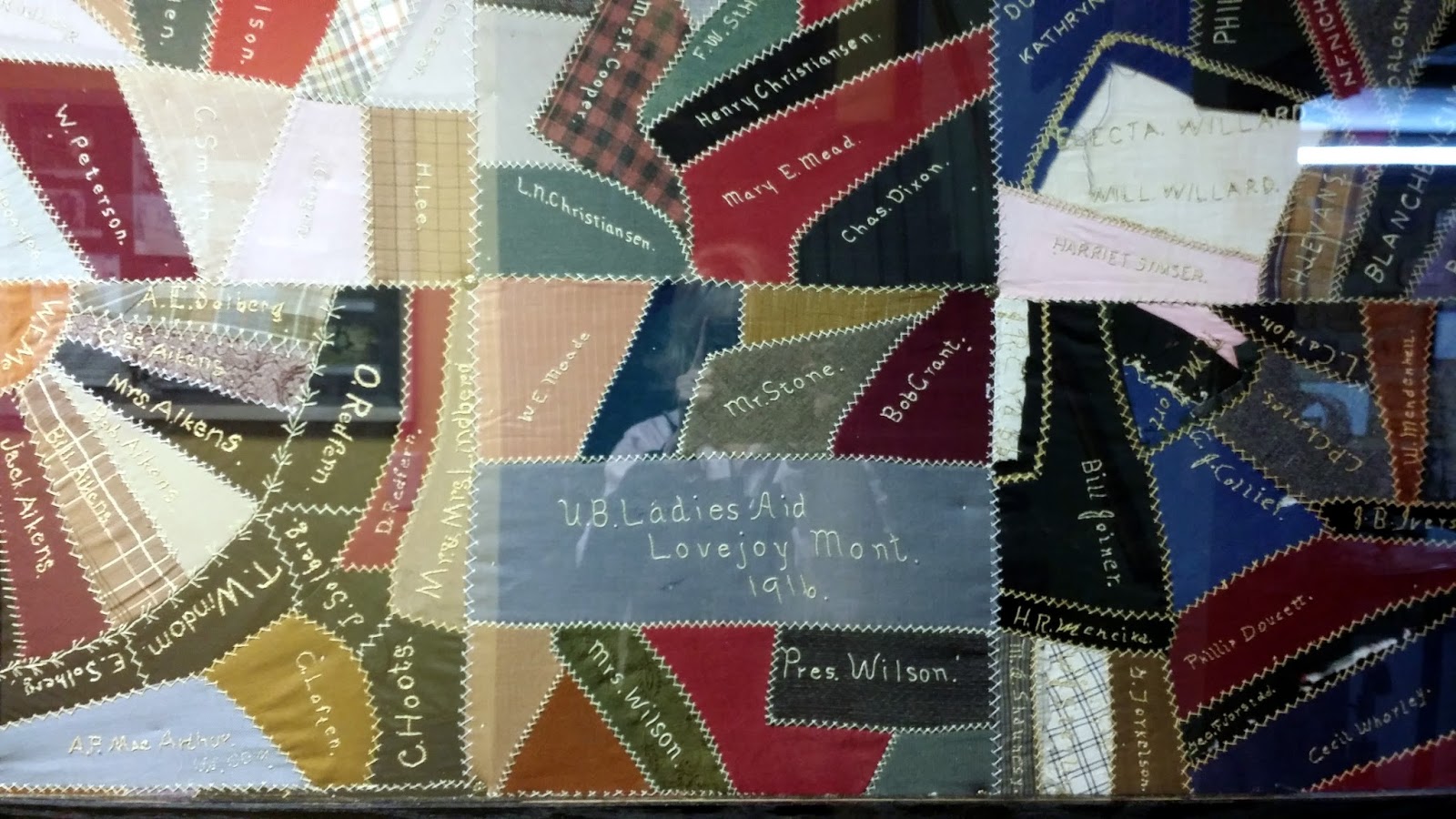 | A portion of a crazy Quilt done by local Montanans in 1916 |